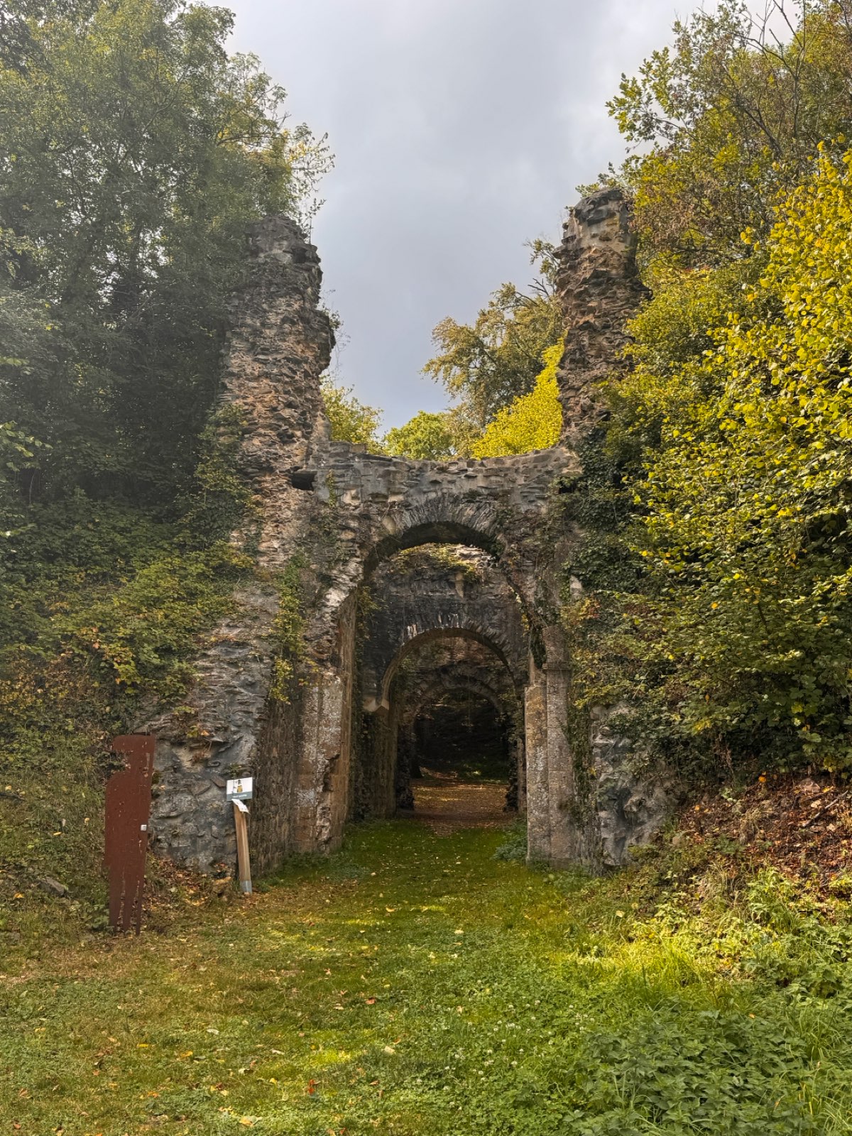 Randonnée de 9,5 km autour de La Pommeraye. Découvrez Château Ganne! Ses ruines pittoresques, dont l’impressionnante tour porche, au milieu des bois créent une ambiance romantique propice à la rêverie et à la naissance des légendes, dont celle de Mellia la blonde.